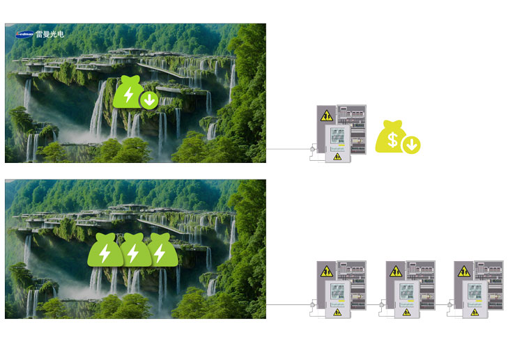 相同分辨率下價格更低、配電成本低,節(jié)約大量變壓器、電纜投資;使用成本低,節(jié)約大量電費(fèi)支出