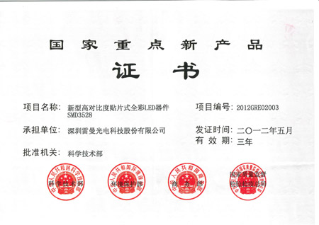 雷曼光電新型高對(duì)比度貼片式全彩LED器件SMD3528(俗稱黑美人)繼榮獲“2011年廣東省高新技術(shù)產(chǎn)品”的榮譽(yù)稱號(hào)之后,再度獲評(píng)“國家重點(diǎn)新產(chǎn)品”殊榮。作為L(zhǎng)ED行業(yè)的領(lǐng)軍企業(yè),雷曼光電長(zhǎng)期致力于科技創(chuàng)新,通過持續(xù)研發(fā)創(chuàng)新保障公司市場(chǎng)占有率的持續(xù)提升。