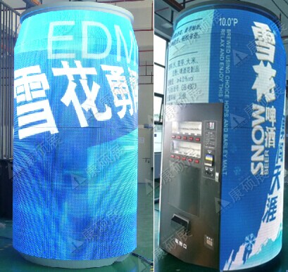 康碩展2013年研發(fā)設計的LED柱狀顯示屏(易拉罐),專為工程項目設計,廣泛應用各類商場、展會展廳、酒店、地鐵站、機場等場所??呻S意播放廣告視頻和圖像文字,把各種信息實時、同步、清晰地展示在觀眾前面。作為一款精準市場應用中的個性化產(chǎn)品,可配合自動售賣機一起使用,產(chǎn)品極具創(chuàng)新性、節(jié)能環(huán)保,不僅經(jīng)濟效益及社會效益顯著,而且實用價值高,屬國內(nèi)同行首創(chuàng)。