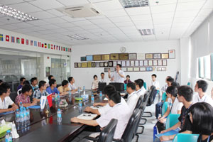 在互動(dòng)交流會(huì)上,李漫鐵董事長(zhǎng)對(duì)桂林一期班老師及學(xué)員們的到來(lái)表示了熱烈的歡迎。李漫鐵董事長(zhǎng)表示LED 行業(yè)是正處于高速發(fā)展階段的朝陽(yáng)行業(yè),并勉勵(lì)桂林一期班的學(xué)員們努力學(xué)習(xí)封裝相關(guān)知識(shí),積極投身于LED光電產(chǎn)業(yè)。隨后由市場(chǎng)部經(jīng)理李彬賓向桂林一期班老師及學(xué)員們?cè)敿?xì)而全面的介紹了公司概況、產(chǎn)品類(lèi)型、發(fā)展歷程及對(duì)未來(lái)的戰(zhàn)略規(guī)劃。在最后的交流互動(dòng)環(huán)節(jié),學(xué)員就其關(guān)注的問(wèn)題與公司相關(guān)負(fù)責(zé)人進(jìn)行了積極熱烈的溝通。