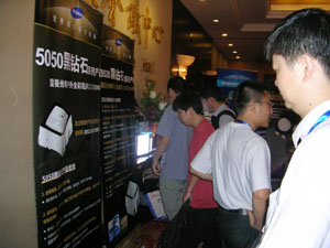 為了讓現(xiàn)場參會人員更加直觀的體驗雷曼光電戶外全彩SMD的魅力,工作人員在會場入口顯眼處位置,擺放了雷曼光電3528戶外全彩SMD黑鉆石系列、5050戶外全彩SMD黑鉆石系列以及3528戶內(nèi)全彩SMD黑美人的產(chǎn)品簡介宣傳畫。同時,還精心設(shè)置了一個“雷曼光電戶外5050和戶外3528黑鉆石產(chǎn)品防水試驗” ,3528戶外全彩SMD黑鉆石和5050戶外全彩SMD黑鉆石兩塊模組被浸泡在魚缸中,展示其優(yōu)異性能,吸引了行業(yè)協(xié)會領(lǐng)導(dǎo)以及其他參會人員前來觀看,并給予高度評價。