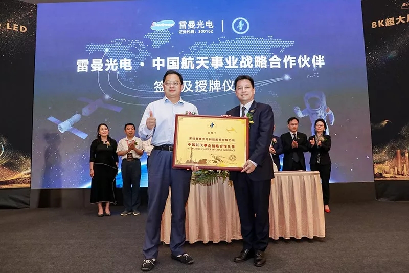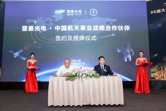 2019年7月12日,中國LED領(lǐng)軍企業(yè)雷曼光電與中國航天基金會戰(zhàn)略合作伙伴簽約及授牌儀式在北京舉行。雷曼光電與中國航天事業(yè)牽手,正式成為"中國航天事業(yè)合作伙伴"。中國航天基金會理事長吳志堅、雷曼光電董事長兼總裁李漫鐵等領(lǐng)導和產(chǎn)業(yè)鏈嘉賓,以及業(yè)內(nèi)外媒體共同出席會議并見證這一重要時刻。