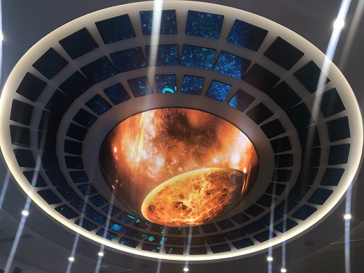 近日,由雷曼-康碩展出品的創(chuàng)意LED半球屏成功照亮南京麒麟科技園智能品牌館。創(chuàng)意LED半球屏很好的融入展廳國(guó)際化高端設(shè)計(jì)需求,現(xiàn)場(chǎng)的展示效果得到了客戶的認(rèn)可。