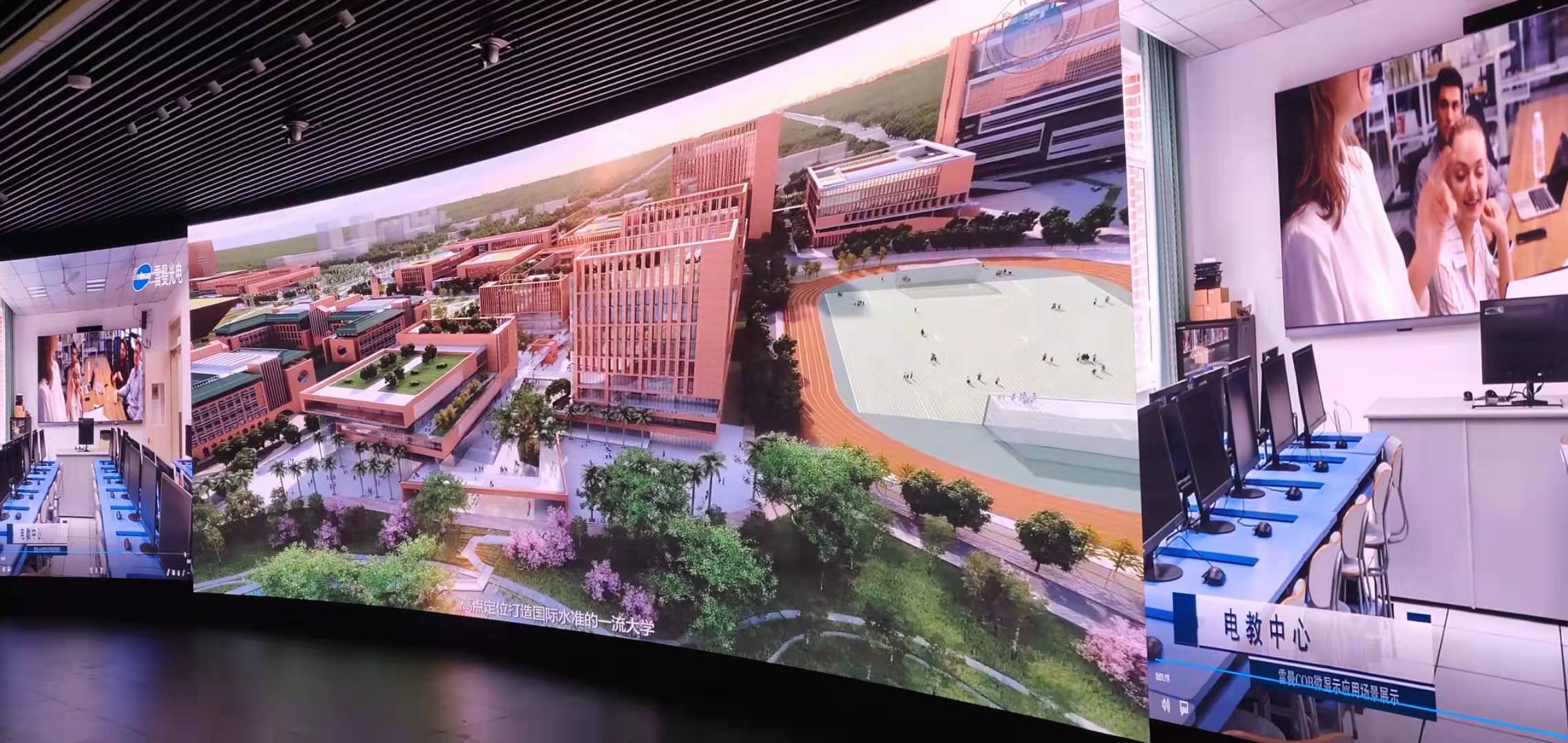 為了匹配國際一流校區(qū)的安保需求,華南理工大學(xué)廣州國際校區(qū)的中央綜合監(jiān)控中心建設(shè)尤為重要。經(jīng)過廣州市重點(diǎn)辦、設(shè)計(jì)單位、校方行政及技術(shù)主管單位、建設(shè)施工單位、監(jiān)理等多部門的多方考察、嚴(yán)格評(píng)選,最終確定了雷曼光電為共建單位。由雷曼光電提供的代表行業(yè)最新技術(shù)的COB超高清小間距LED顯示屏進(jìn)駐華南理工大學(xué)廣州國際校區(qū)的智能監(jiān)控中心。雷曼COB超高清智慧大屏既可獨(dú)立單屏顯示接近2個(gè)8K的大分辨率、又可自由組合3個(gè)4K+12個(gè)2K或24個(gè)2K的組合顯示,畫質(zhì)清晰、細(xì)致入微,匹配智慧校園的全方位智能監(jiān)控需求。