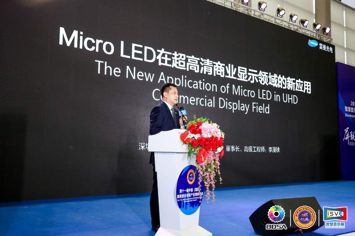 雷曼光電董事長李漫鐵發(fā)表《Micro LED在超高清顯示領(lǐng)域的新應(yīng)用》主題演講,在李漫鐵看來,顯示應(yīng)用有很多要求,其中在100吋以上專業(yè)及商業(yè)顯示市場的解決方案為Micro LED。