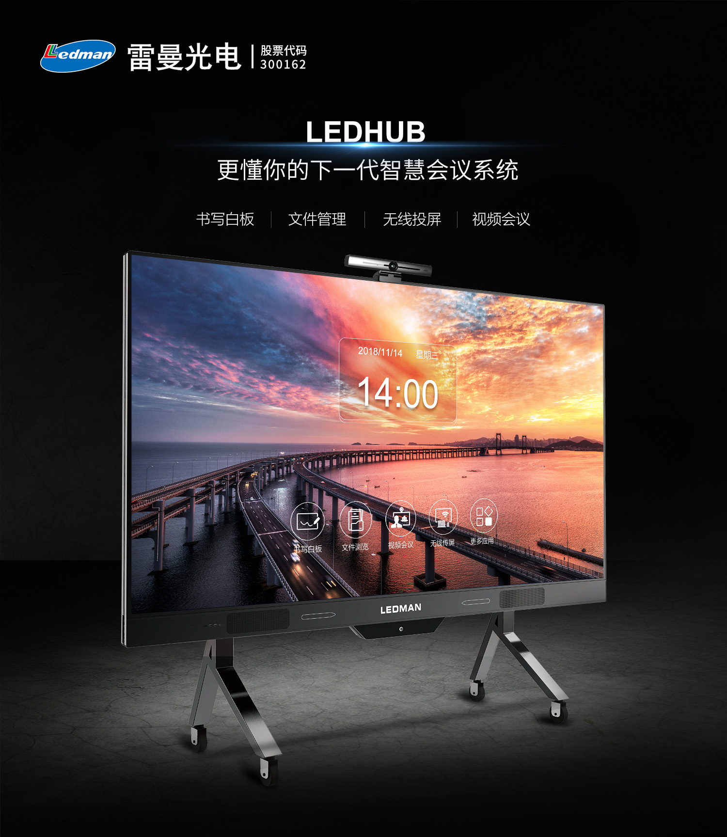公開信息顯示,雷曼光電LEDHUB智慧會議系統(tǒng)內(nèi)置的基于COB技術(shù)的Micro LED超高清顯示屏具有高防護性、高可靠性、高清晰度、優(yōu)異畫質(zhì)、低能耗等優(yōu)點,立體場景顯示更加逼真的畫面更能傳遞出遠超普通畫面的細節(jié)信息,海量復(fù)雜數(shù)據(jù)可直觀呈現(xiàn),實現(xiàn)同屏可視,可更好地用于社會治安監(jiān)控、應(yīng)急指揮中心系統(tǒng)集成及數(shù)據(jù)呈現(xiàn)、視頻指揮系統(tǒng)、視頻會議等。該會議系統(tǒng)還同時實現(xiàn)書寫白板、文件管理、視頻會議、無線傳屏等豐富強大功能,解決了普通會議室白板或投影看不清、連不上、寫不便、無遠程的痛點,打造了六機(投影儀、電子白板、高清影院、電腦、視頻會議、手機)合一,一機多用的智慧會議新生態(tài),能夠極大提升會議的高效及便利體驗,是更適合遠程視頻的辦公會議系統(tǒng)。