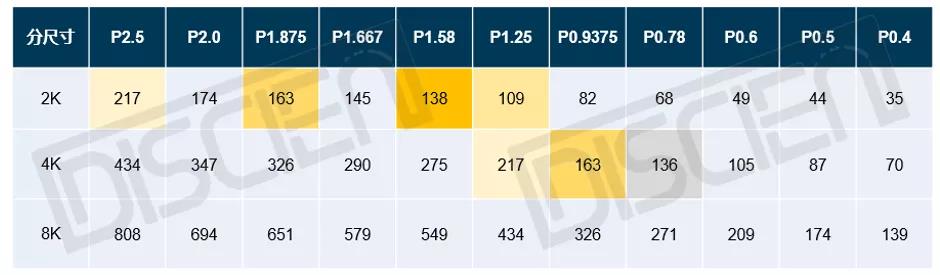 LED一體機(jī)不同分辨率對(duì)應(yīng)尺寸