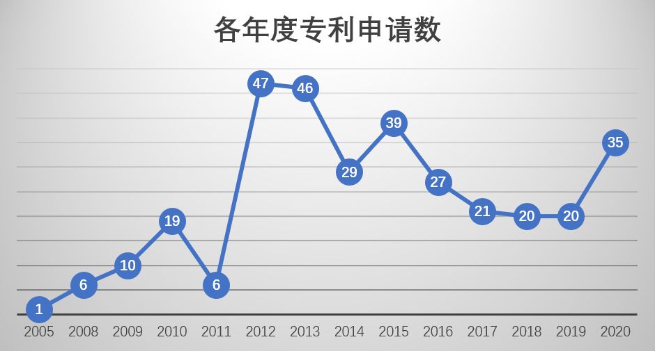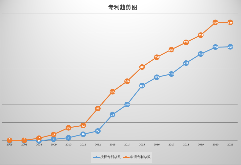 雷曼光電各年度專利申請(qǐng)趨勢(shì)圖