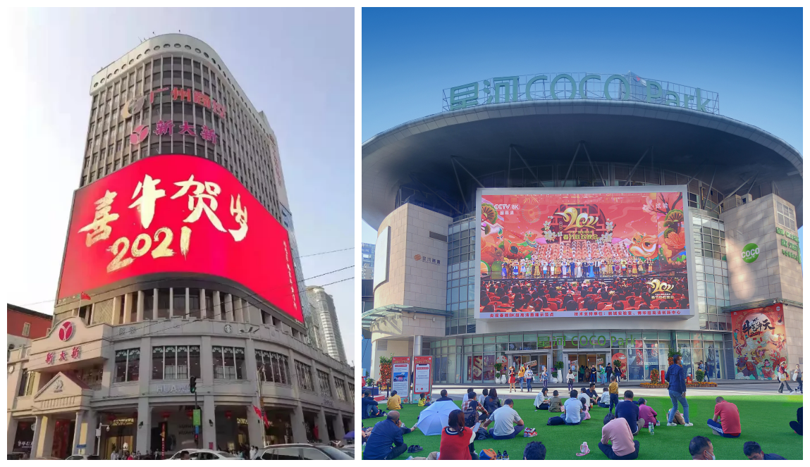 2021年的除夕之夜(2月11日),中央廣播電視總臺(tái)通過(guò)8K超高清電視頻道對(duì)央視春晚進(jìn)行直播——這也是全球8K超高清電視領(lǐng)域的首次直播。雷曼光電位于廣州北京路步行街新大新百貨的8K超高清顯示屏和位于深圳福田COCO PARK的戶(hù)外8K超高清顯示屏接收總臺(tái)8K信號(hào)并同步直播了首年央視8K春晚,拉近了8K與大眾的距離。