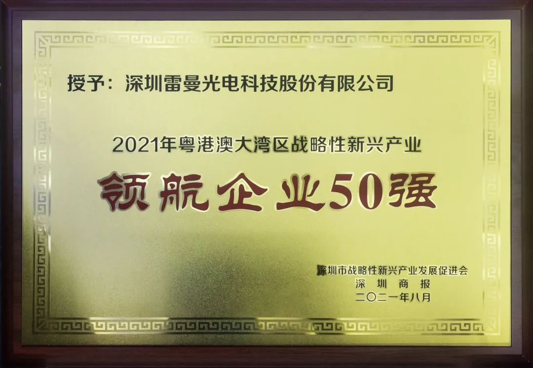 深圳雷曼光電科技股份有限公司榮獲2021年粵港澳大灣區(qū)戰(zhàn)略性新興產(chǎn)業(yè)“領(lǐng)航企業(yè)50強”。雷曼光電作為中國第一家LED顯示屏高科技上市公司、中國航天事業(yè)戰(zhàn)略合作伙伴,是基于COB先進技術(shù)的8K Micro LED超高清顯示龍頭企業(yè),在專業(yè)顯示市場有極佳口碑,其會議與商用顯示應(yīng)用產(chǎn)品及首款家用顯示產(chǎn)品也取得了喜人的市場反饋。本次入選是對雷曼光電參與深圳超高清產(chǎn)業(yè)發(fā)展、助力雙區(qū)建設(shè)的高度肯定。雷曼光電將發(fā)揮超高清領(lǐng)域的產(chǎn)業(yè)鏈優(yōu)勢與技術(shù)優(yōu)勢,引領(lǐng)新一輪顯示技術(shù)革命和產(chǎn)業(yè)變革的方向,搶占未來產(chǎn)業(yè)發(fā)展先機!、