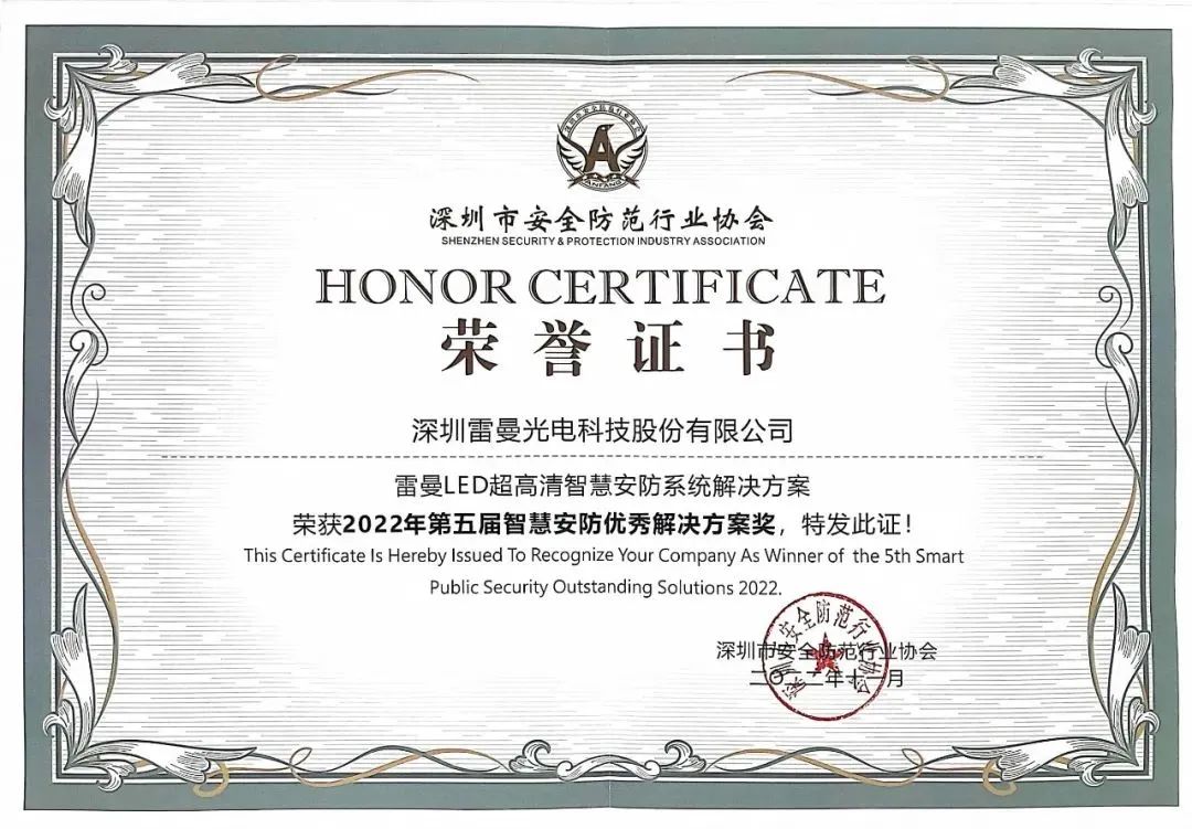 雷曼LED超高清智慧安防系統(tǒng)解決方案獲評2022年第五屆智慧安防優(yōu)秀解決方案獎。雷曼LED超高清智慧安防系統(tǒng)解決方案打造了以雷曼COB超高清大屏為核心的可視可控的指揮調(diào)度平臺,立體化展示安防的各個(gè)環(huán)節(jié)運(yùn)營情況,保障安全管控的全局性和可控性。