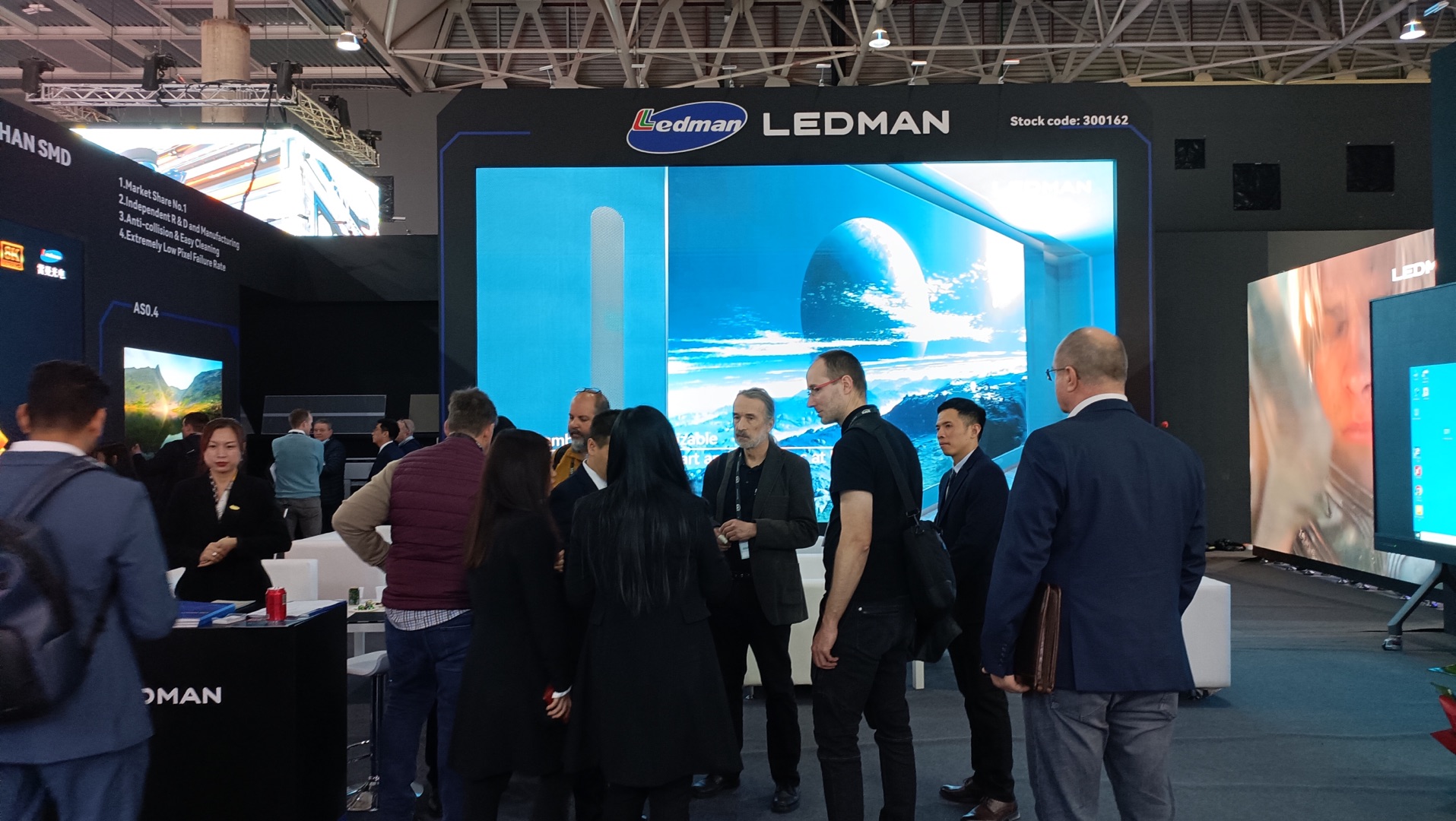 ISE現(xiàn)場(chǎng),324吋雷曼8K Micro LED超高清大屏以超大尺寸震撼亮相,8K超高清的細(xì)膩畫質(zhì)吸引了不少前來(lái)觀展的觀眾。這款產(chǎn)品是雷曼在5G時(shí)代背景下推出的全球首款324吋8K Micro LED超高清顯示屏,采用雷曼自主專利的COB集成封裝技術(shù),機(jī)身纖薄,具備低亮高灰、高可靠、廣色域等卓越產(chǎn)品性能,更能適配5G時(shí)代超高清智慧顯示的需求。