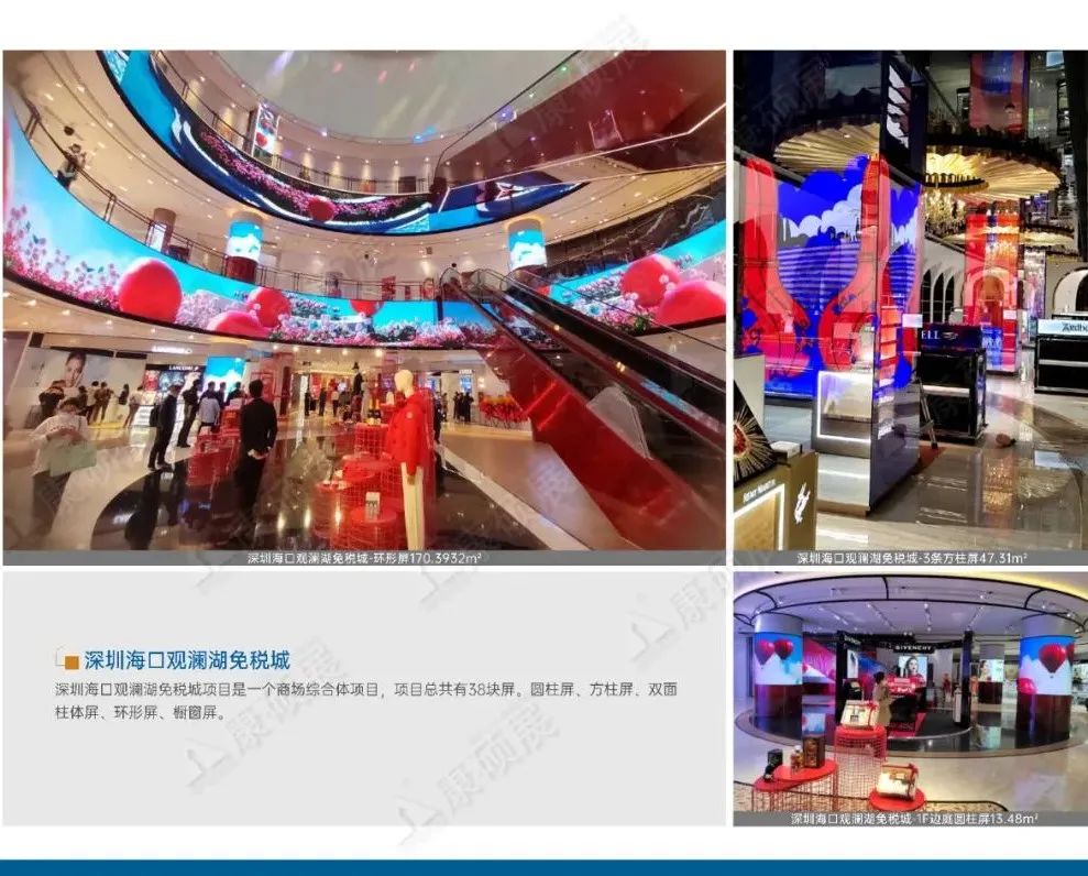 雷曼康碩展共計(jì)為深圳免稅海口觀瀾湖免稅城打造了38塊LED顯示屏,包含圓柱屏、方柱屏、雙面柱體屏、環(huán)形屏、櫥窗屏等異形屏,將免稅城打造成為擁有400+奢華品牌、20000+平方米的生活交際、旅游休閑“品質(zhì)示范”中心,為消費(fèi)者帶來(lái)舒適的購(gòu)物體驗(yàn),引導(dǎo)國(guó)人崇尚品質(zhì)生活的消費(fèi)理念,引領(lǐng)充滿時(shí)代精神的生活方式。