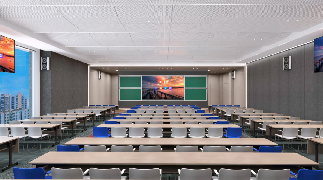 該系統(tǒng)可實現(xiàn)智能同屏、自由縮放、四分屏白板、智慧互聯(lián)、無感知音頻、智能攝像跟蹤、多方互動、線上授課等功能,支持 138 英寸、165 英寸、185 英寸等多種尺寸定制,適用于中大型教室、報告廳、多功能廳和高端培訓(xùn)中心等應(yīng)用場景。