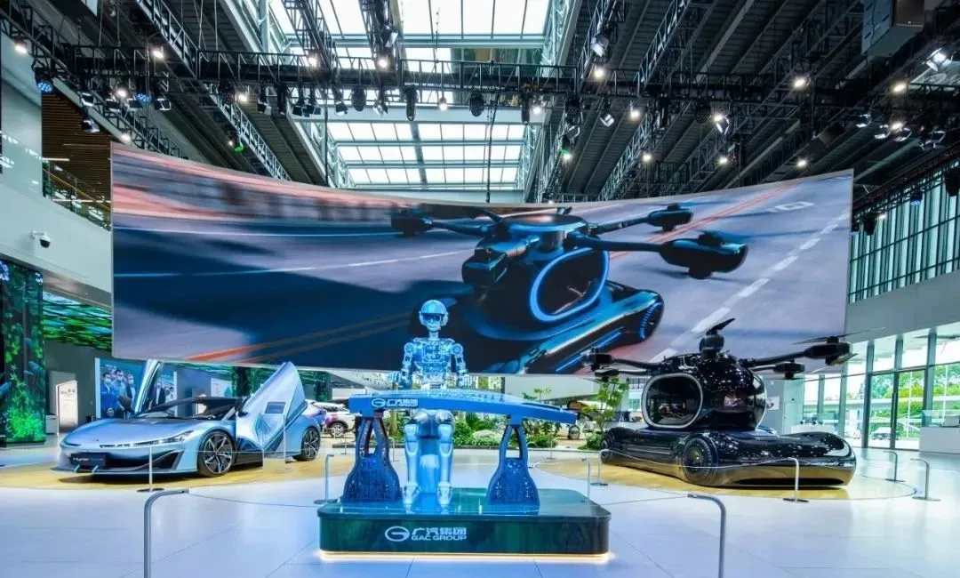 展望未來區(qū)展示的一系列黑科技作品,結(jié)合小間距曲面屏呈現(xiàn)的驚艷視覺體驗,生動展示了廣汽集團的飛行汽車、無人駕駛汽車等未來汽車概念。