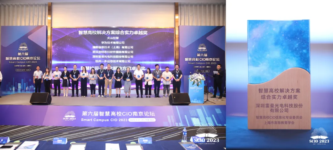 雷曼受邀參會(huì)并憑借在教育領(lǐng)域的技術(shù)積累和自主創(chuàng)新,榮獲凌云獎(jiǎng)“智慧高校解決方案綜合實(shí)力卓越獎(jiǎng)”。
