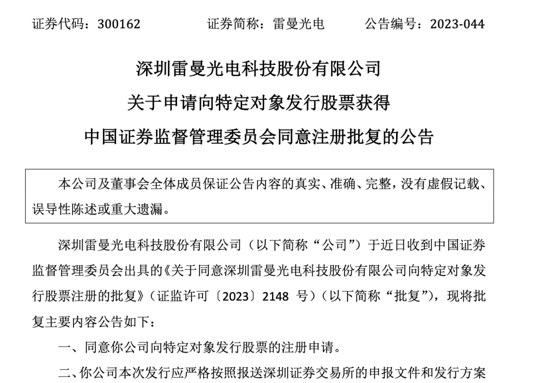 9月12日,雷曼光電提交了定增計劃說明書,28日就得到了證監(jiān)會的批復同意(有效期12個月內(nèi))。定增計劃為不超過104,853,009股,不超過發(fā)行前總股本30%,擬計劃募集不超過6.89億。其中募集金額中,雷曼光電COB超高清顯示改擴建項目約5.4億,1.5億補充流動資金。