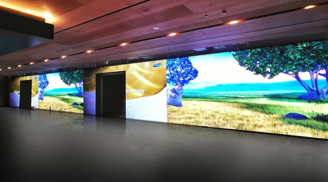 在江西某科技公司展廳,雷曼COB超高清節(jié)能冷屏即使長時間亮屏,屏體溫度依舊較低。此外,該屏還具有高亮度和長壽命的特點,性能穩(wěn)定可靠。