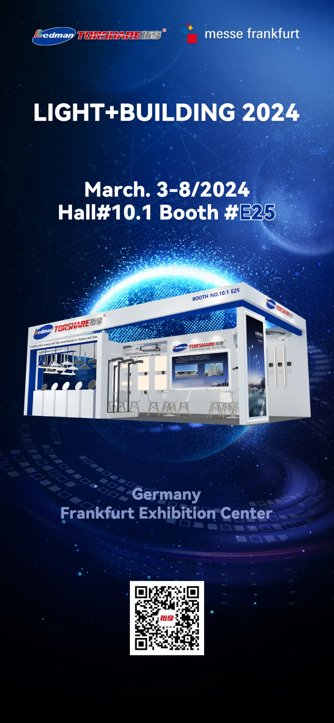 2024年3月3日至8日,雷曼光電子公司拓享科技即將亮相2024年德國法蘭克福照明與建筑技術(shù)展(Light+Building 2024),展示最新研發(fā)的LED燈具新品,誠邀廣大客戶蒞臨10.1號(hào)館E25展位參觀交流。