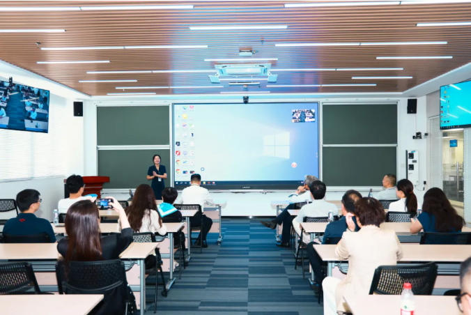 陳方若院長一行重點體驗了雷曼光電打造的數(shù)字化教育場景,該場景深度還原了“全沉浸、強交互、高實時”的活力課堂,展示雷曼高校數(shù)字交互教育顯示系統(tǒng)具備的“智能同屏、自由縮放、四分屏白板、智慧互聯(lián)、多方互動、線上授課”等豐富功能。該系統(tǒng)創(chuàng)新教學新模式,已在上海交大閔行校區(qū)陳瑞球樓114教室落地應用。