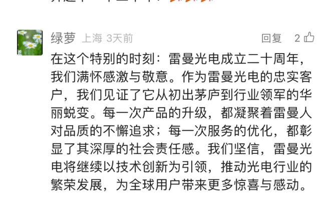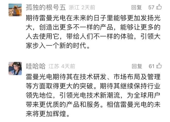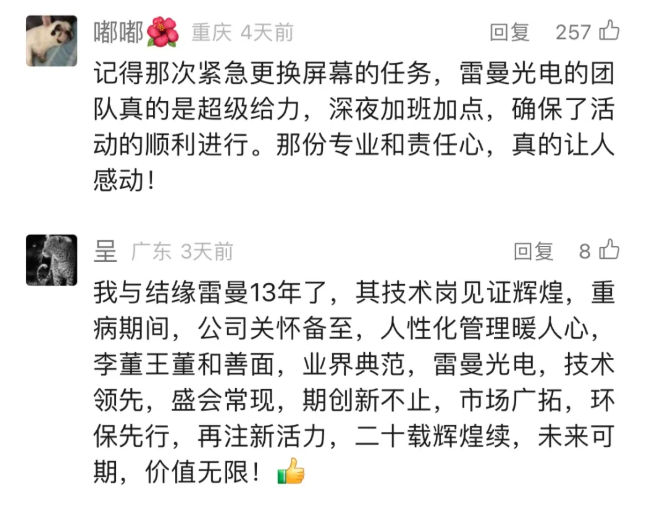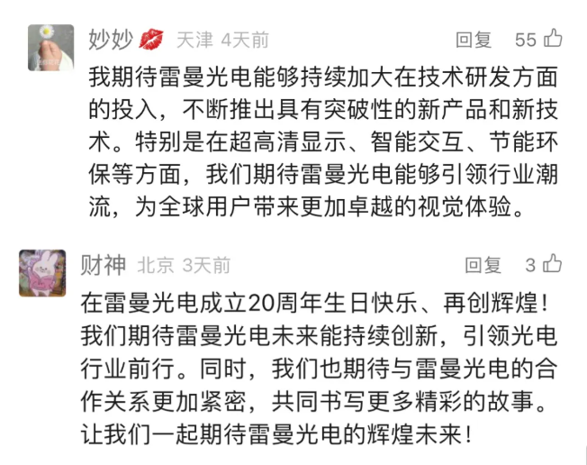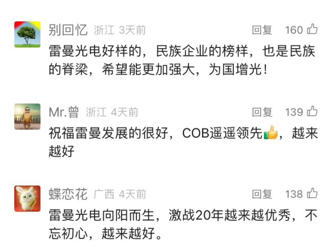便收到了眾多粉絲對雷曼光電的真摯祝福