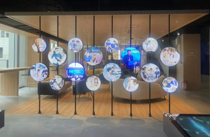 走進零一會客廳,圓形屏呈現(xiàn)出生動的影像效果,創(chuàng)意顯示別具一格。零一的會客廳有個浪漫的名字:“天街”,而這些圓形屏好似被點亮的街燈,同時也寓意著無數(shù)個有無限可能的X型人才被點亮,他們未來也許會成為科學界的驕傲,閃耀如天上的街燈。