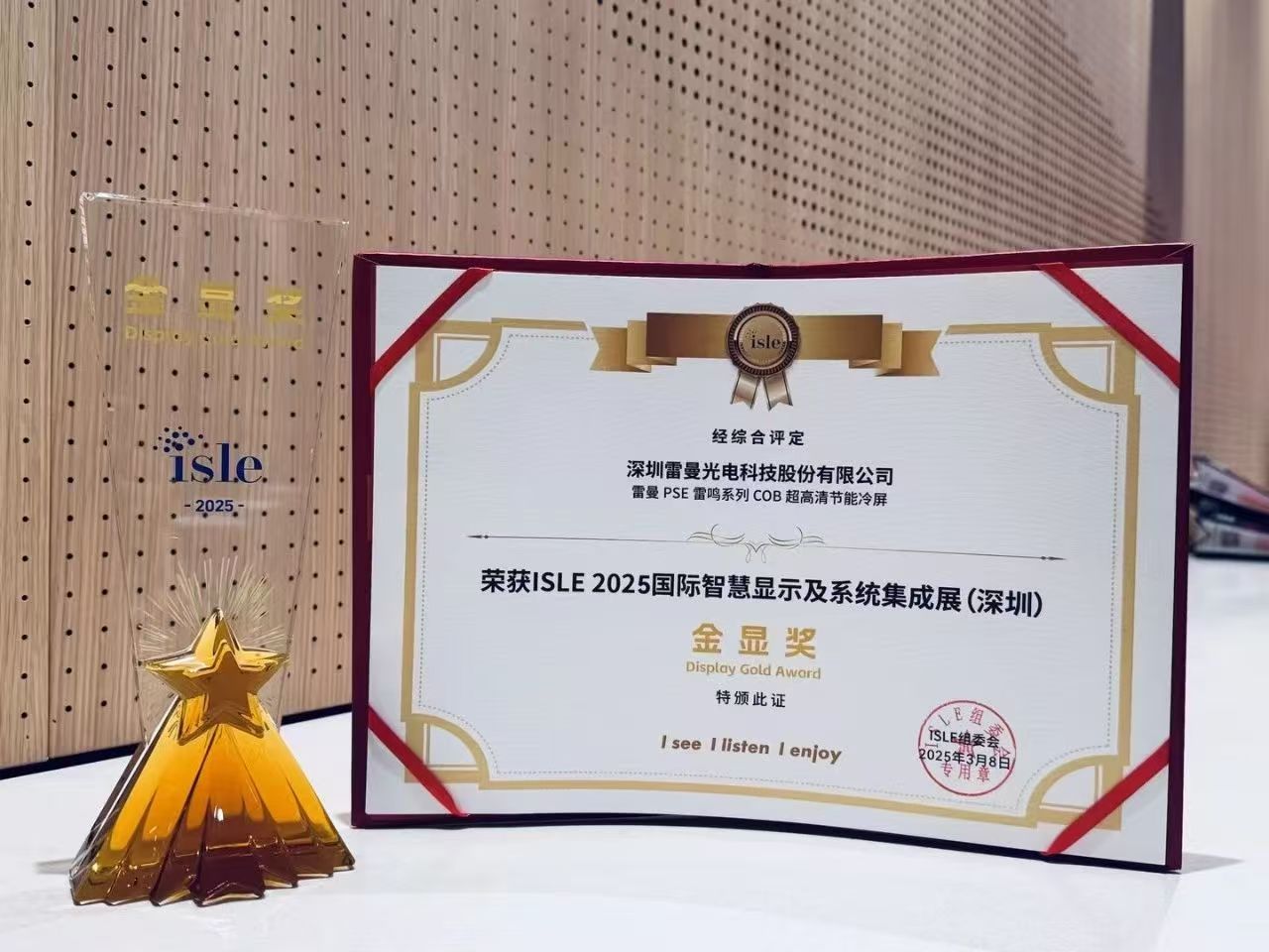 PSE雷鳴COB超高清節(jié)能冷屏榮獲“金顯獎”
