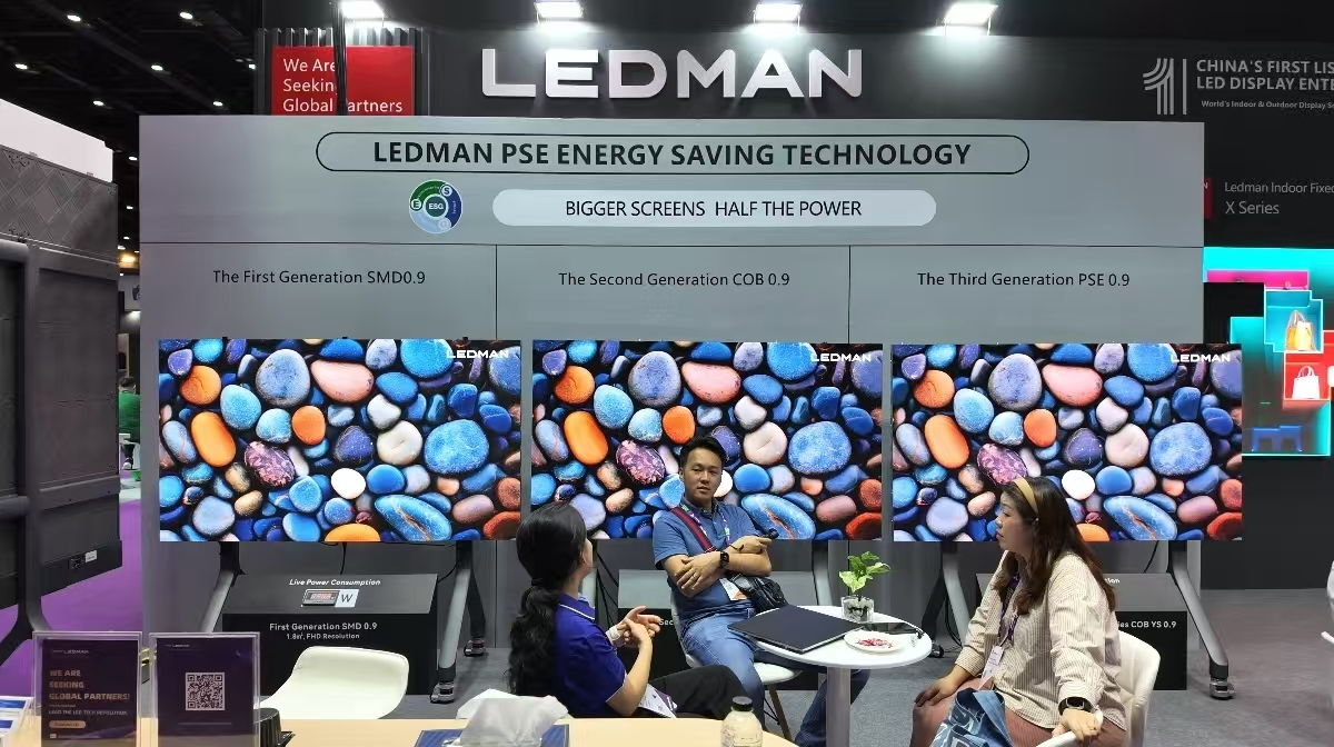 雷曼光電自主研發(fā)的PSE節(jié)能冷屏于近期斬獲2025年日本IDPA AWARD國(guó)際先鋒設(shè)計(jì)大獎(jiǎng),PSE節(jié)能對(duì)比墻通過(guò)實(shí)時(shí)對(duì)比演示,令觀眾直觀感受其顯著節(jié)能效果:功耗較傳統(tǒng)屏直降50%,屏體表面溫度低于人體體溫,打破“高亮度必伴隨高能耗”的行業(yè)桎梏,現(xiàn)場(chǎng)多家企業(yè)用戶(hù)體驗(yàn)后進(jìn)行詢(xún)單。