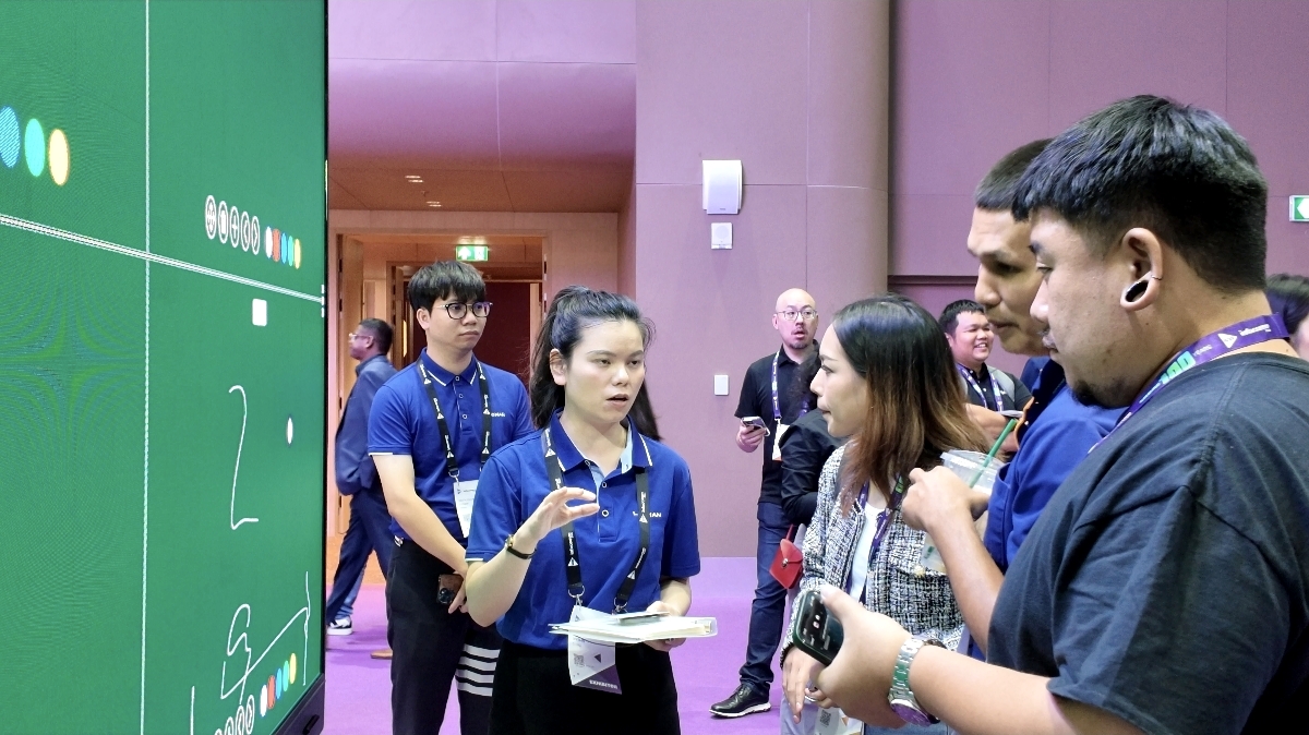 雷曼智慧會(huì)議一體機(jī)吸引跨國(guó)企業(yè)代表駐足?,F(xiàn)場(chǎng)模擬跨國(guó)會(huì)議場(chǎng)景中,文件批注、四分屏數(shù)據(jù)對(duì)比、無(wú)線傳屏等功能流暢聯(lián)動(dòng),完美呈現(xiàn)“一屏?xí)h”的高效協(xié)同價(jià)值。