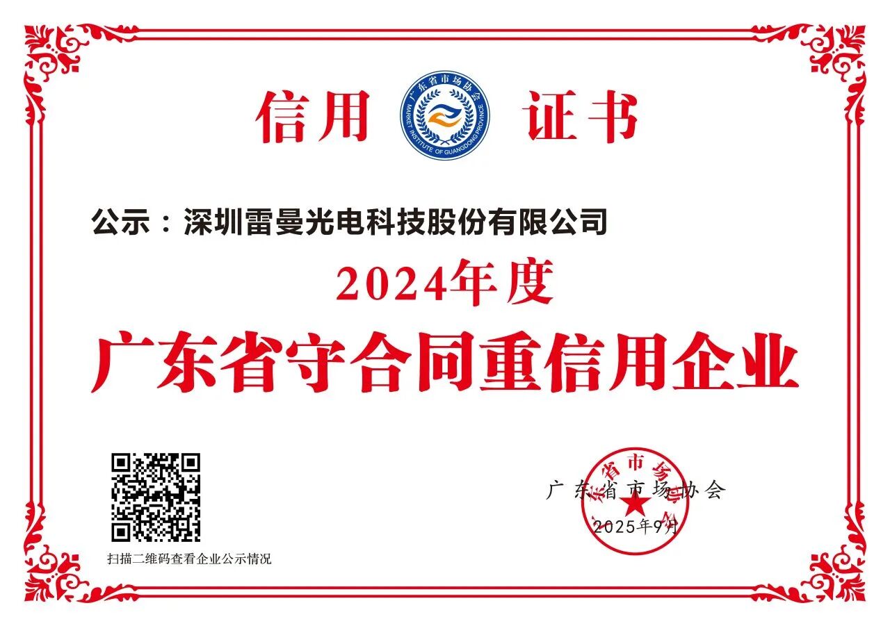 公司秉持“以誠(chéng)為本、守信為責(zé)”的核心價(jià)值觀,持續(xù)完善信用管理體系,嚴(yán)格執(zhí)行合同全流程管控,并通過技術(shù)創(chuàng)新不斷提升產(chǎn)品品質(zhì)與服務(wù)水平,確保與客戶的合作全程透明可控。近六年來,雷曼光電及及其控股子公司康碩展的合同履約率始終保持100%,贏得了客戶的廣泛信賴。