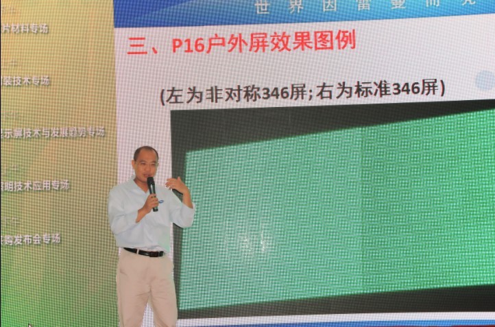 在發(fā)布會現(xiàn)場,李小杰總經(jīng)理就346非對稱LED的設(shè)計背景、產(chǎn)品性能、P16戶外顯示屏采用非對稱產(chǎn)品和標準產(chǎn)品顯像效果對比情況、PCB設(shè)計注意事項、非對稱346LEDs顯示屏優(yōu)點等方面向在場嘉賓做出了詳細地介紹。
