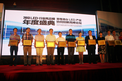 2013年7月3日,2013年LED行業(yè)風(fēng)云榜年度盛典暨粵港臺(tái)LED產(chǎn)業(yè)協(xié)同創(chuàng)新高峰論壇在深圳市會(huì)展中心隆重舉行,粵港臺(tái)三地近百家知名企業(yè)和400多名企業(yè)家及行業(yè)精英參會(huì)。