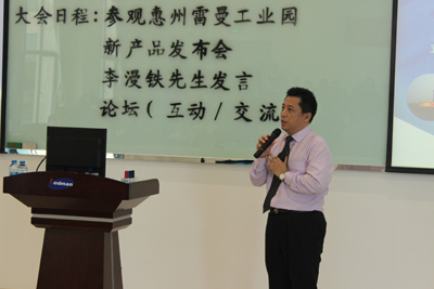 雷曼光電副總裁黃建忠先生在大會開始時發(fā)表了致辭,他向在場的LED顯示屏廠商和媒體記者表示熱烈的歡迎,并介紹了于去年底開業(yè)的惠州雷曼光電工業(yè)園。
