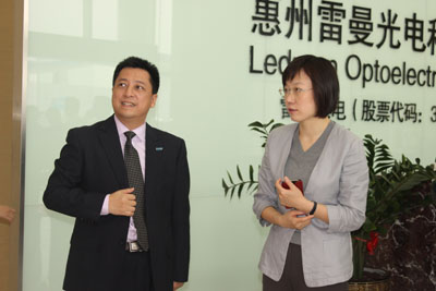 張瑛副市長一行領導詳細參觀了惠州雷曼工業(yè)園頗具現(xiàn)代化氣息的辦公生產區(qū)域、領先于同行業(yè)的先進生產設備以及優(yōu)越的生活配套設施,對惠州雷曼投產以來所取得的成績給予了肯定。參觀過程中,各位領導們在聽取了李漫鐵董事長對雷曼光電發(fā)展的詳細報告,以及雷曼光電未來5年的規(guī)劃目標之后,表示惠州政府將著重關注和扶持像雷曼光電這樣具有巨大發(fā)展?jié)摿Φ膬?yōu)秀企業(yè)。