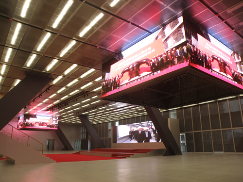 近日,深圳證券交易所新大廈戶內高清晰P6 LED顯示屏在工作人員的調試下,相續(xù)在深交所新樓內各相應樓層成功點亮。P6戶內全彩顯示屏具有超薄、輕量、高像素密度、畫面精細、色彩艷麗等優(yōu)勢和特點,其播放文字、LED視頻節(jié)目、動態(tài)全彩圖像的觀賞效果美倫美煥。值得一提的是,位于八樓上市大廳的雷曼光電吊斗顯示屏及背景屏最具代表性,屏幕設計充分考慮了上市大廳信息傳播的特殊要求,針對大廳轉播的特點采用了超高刷新率(最高可達4000赫茲),亮度、色度可逐點校正的高端技術,屏幕圖像色彩清晰穩(wěn)定、柔和逼真、灰度豐富、層次感和立體感強,同時可保證攝像機拍攝的畫面不會出現(xiàn)閃爍、干擾波紋等不良影像效果。在預演過程中,所營造的精彩視聽氛圍使相關領導和參觀者深感震撼并給與了雷曼光電LED顯示屏諸多好評。